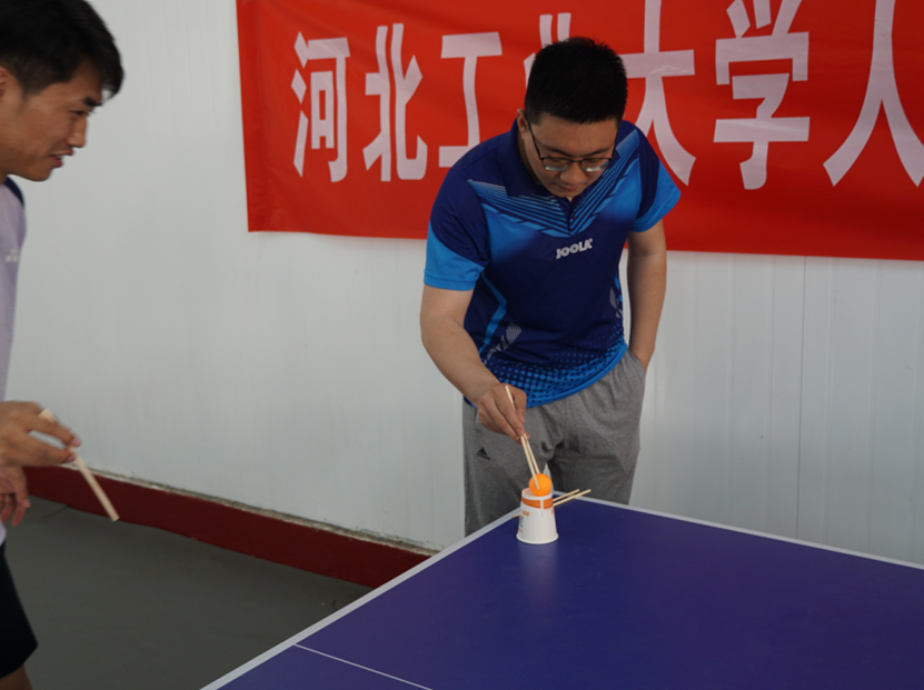 此次比赛不仅有激烈的竞技对抗,还设置了“趣味乒乓”游戏环节,参赛选手们被分为两组进行游戏。首先是“乒乓弹弹弹”,各组队员们屏气凝神,站在乒乓球桌的一侧试图将球精准弹入另一侧的纸盒中。