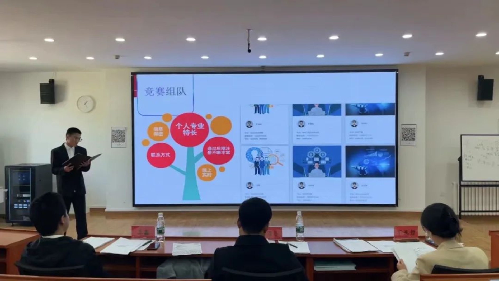 第四支队伍发掘身边问题,针对大学生竞赛需求大,跨院组队困难等问题,提出建立大学生竞赛交流组队平台的项目,且成功做出了实物网站并能正常运行,评委老师对其项目成果给予肯定,同时鼓励同学与校团委交流合作,让项目不断发展。