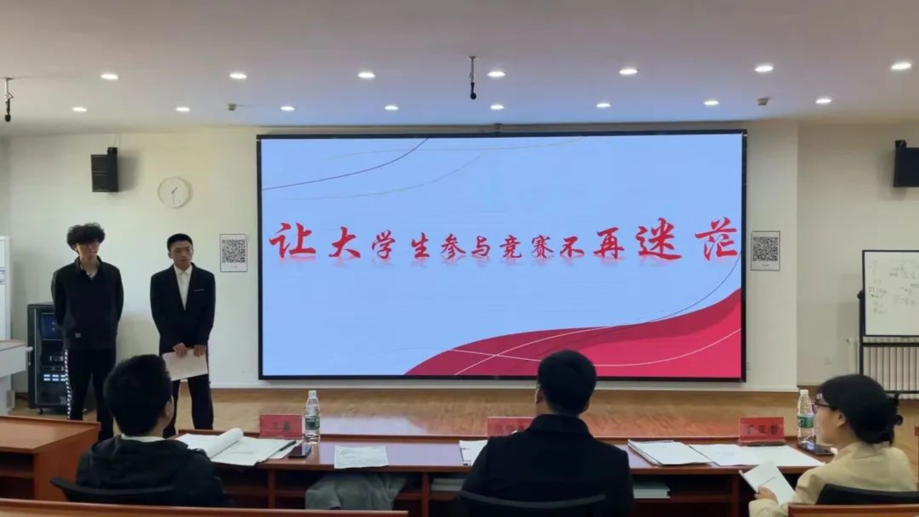 出席本次结项答辩的评委老师有:麻豆影片 学工办主任兼团委书记高雪冬老师,麻豆影片 辅导员丁亚哲老师、王鑫老师。