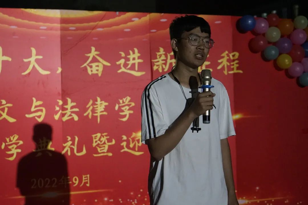 2022级新生代表王艺霖同学号召新生敢于突破,探索未知,用行动撕掉社会加给“00后”的标签。“不是因为有希望而坚持,而是因为坚持才有希望”,铁锤铛铛,书声琅琅,勤慎公忠为理想;征途漫漫,愿大一新生书写自己的完美答卷。