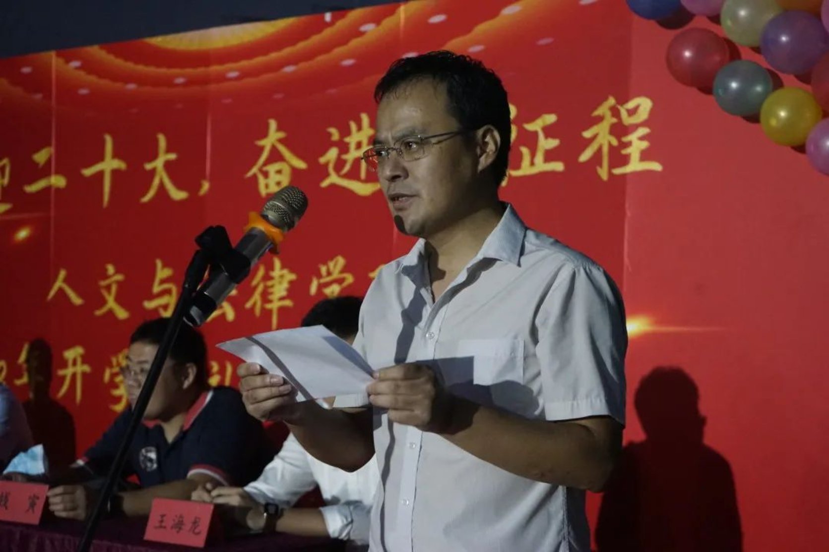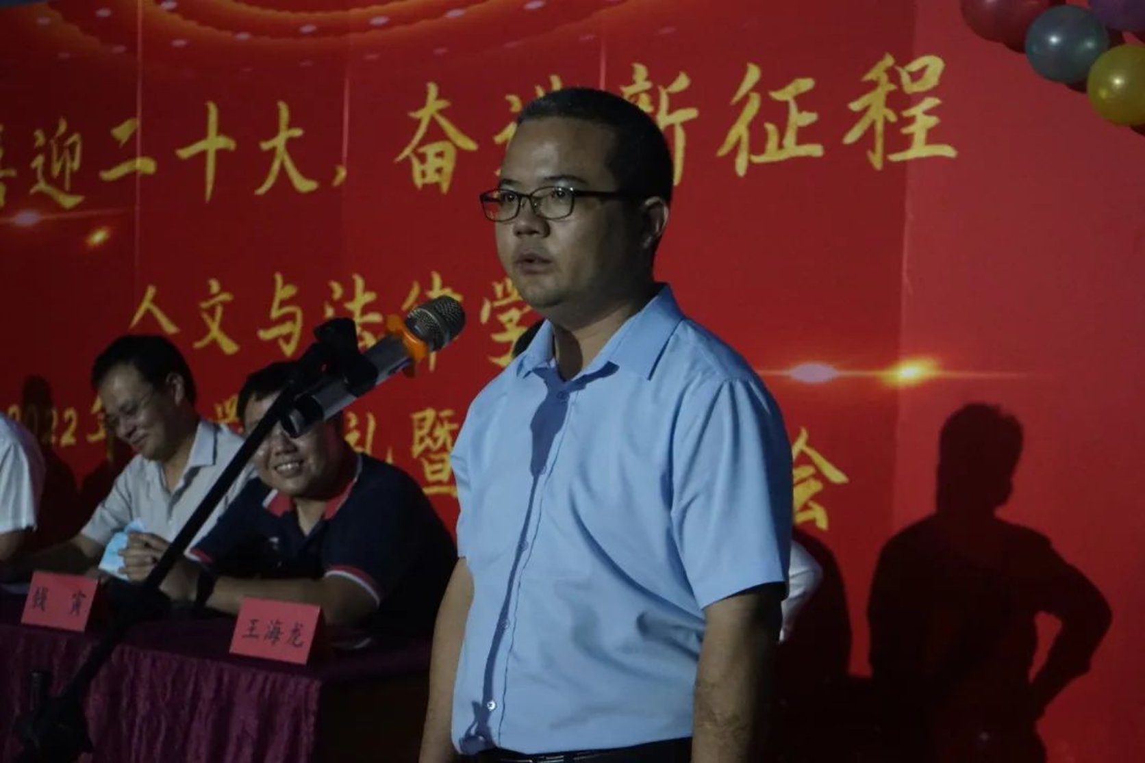 从入学来一直陪伴着新生的2022级新生辅导员王鑫老师发言。“勤慎公忠为理想,工学并举薪火长”,他要求同学们追求卓越,全面发展,投身建设祖国的伟大事业。王老师还强调同学们应拥有适应能力、学习能力、做人做事的能力。“见贤思齐焉,见不贤而内自省”,一代人有一代人的际遇,王老师也表示期待与新生一起拥抱未来,做最好的自己。