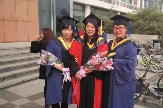 这张照片拍摄于2016年北辰校区大学生活动中心前,在参加硕士研究生毕业典礼后,张老师与两名毕业生的合影。