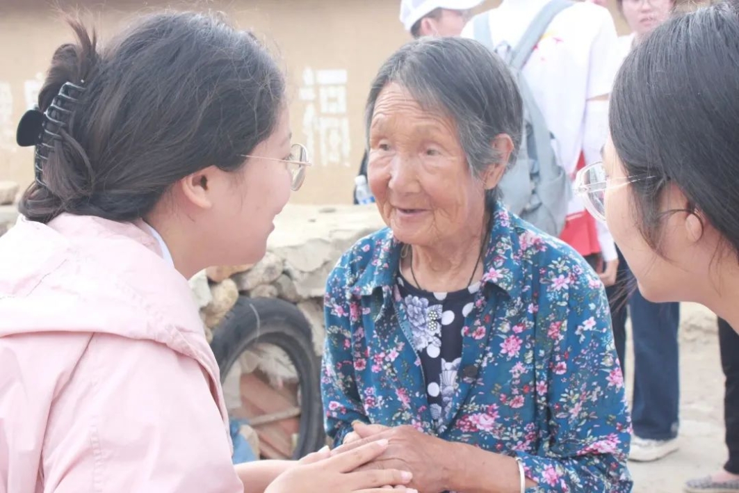 实践队员们走进仝家窑采访了当地的村民,其中有一位和蔼的老奶奶,她是仝家窑村里医生。在和奶奶的沟通交流中,队员们了解到了村中人员分布,村干部成员以及当前村里的文化建设,包括已经矗立了几十年的房屋、村门口经历岁月磨洗的古井、苍劲挺拔的古榆树等古色古香的村落文化。作为岁月的见证者,奶奶能真切感受到乡村振兴战略实施以来村子面貌的转变。除此以外,实践队员还在和奶奶交流的过程中发现了村子现在的一些在村子发展建设中遇到的问题。