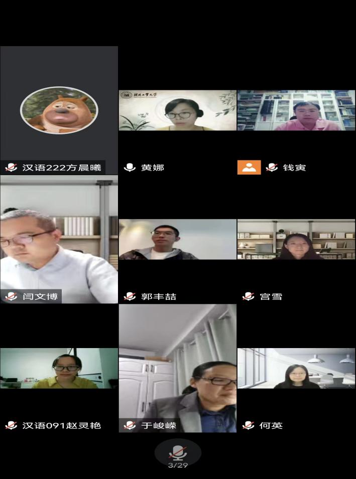 本次会议特邀副院长马立民主持会议,全体院领导、教师与全体汉语专业学生参与观看线上讲座。