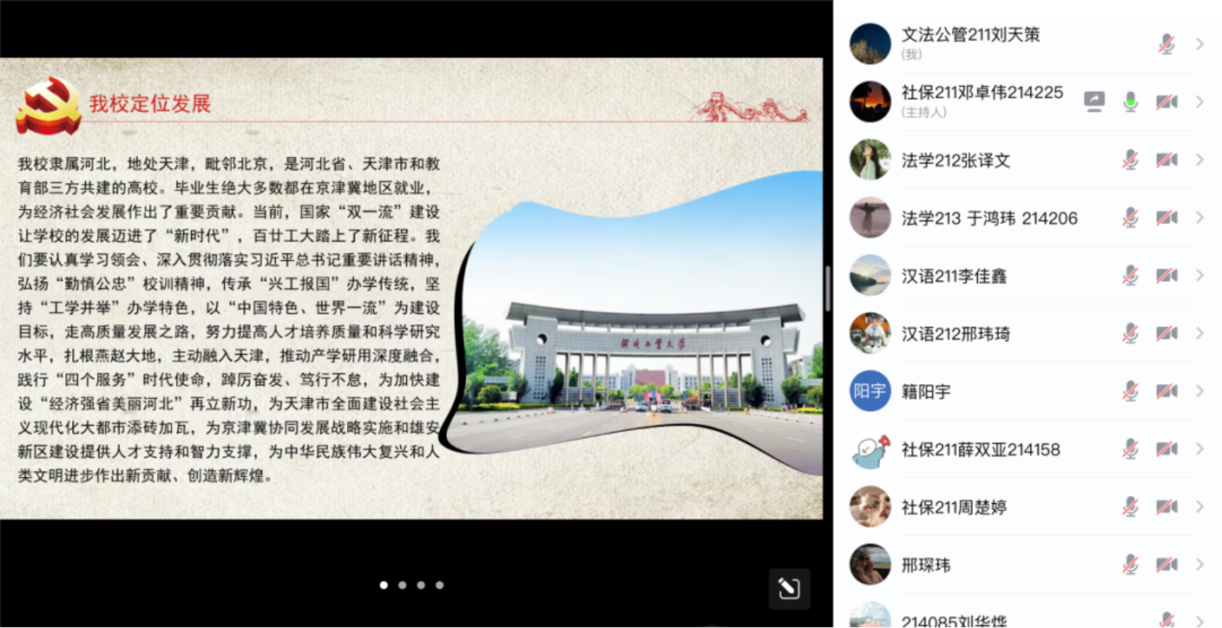 此外,各年级辅导员于3月9日分别开展了一次线上家长会,邀请全体同学和家长共同参加,以走“心”又走“新”的方式深入宣传习近平总书记重要讲话精神,并介绍了习近平总书记视察天津的路线与重要意义。同时,辅导员老师们还立足麻豆影片 发展定位,鼓舞同学们接续奋斗,共创辉煌。在最后,学生和家长代表分别分享了学习感悟和心得,为会议画上了圆满的句号。