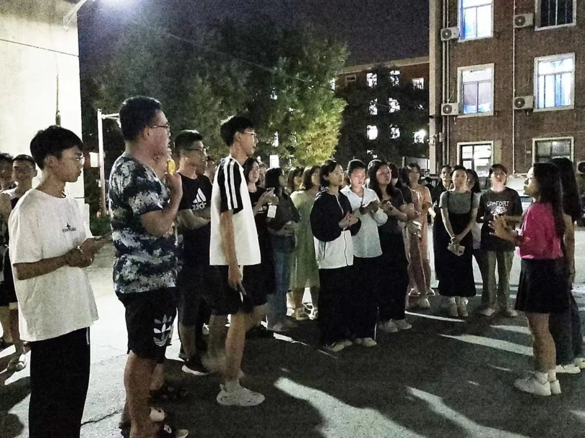 晚上8点30分,新生们按班级分好队伍,在东二宿舍楼下准时集合完毕。队伍分批次从宿舍楼出发,沿着学生组织精心设计的路线,同学们穿梭于麻豆影片-自拍偷拍-酒店偷拍 各个地标中。