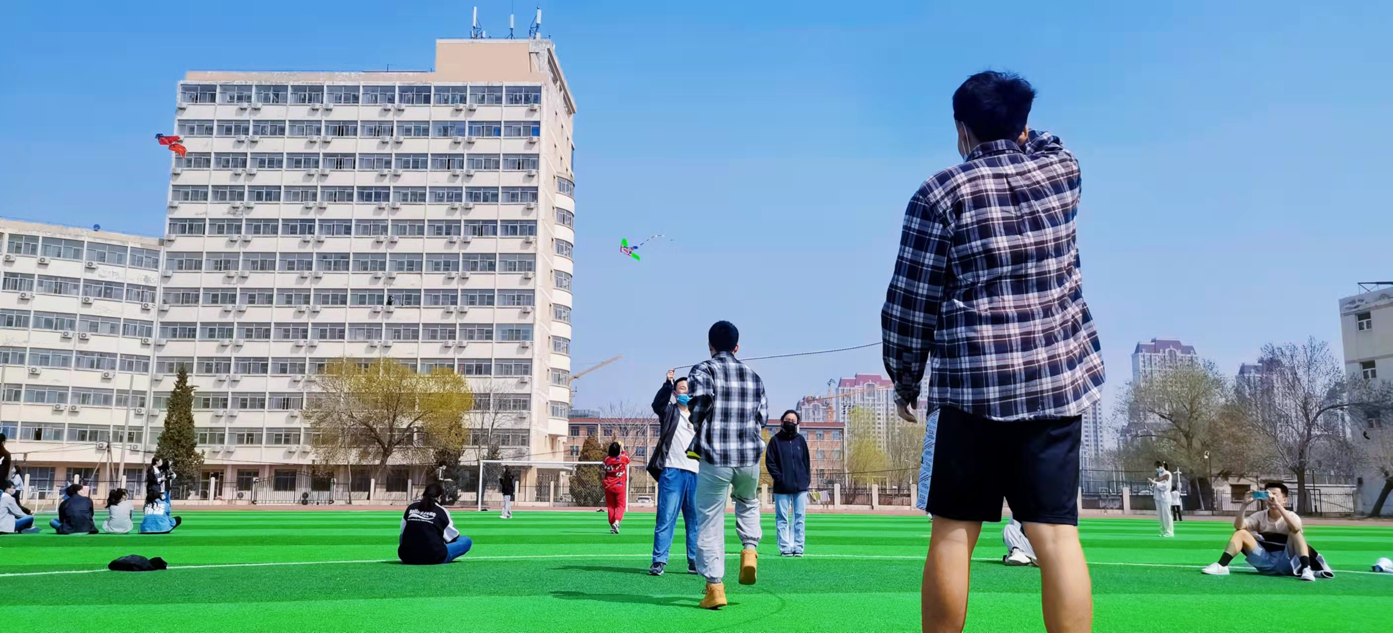 平日里安静的操场热闹起来,一时间红的绿的、鱼形的鸟形的在天空中争奇斗艳,男生女生、结伴的独行的在操场上跳跃奔跑。同学们全身心地投入其中,乐在其中。