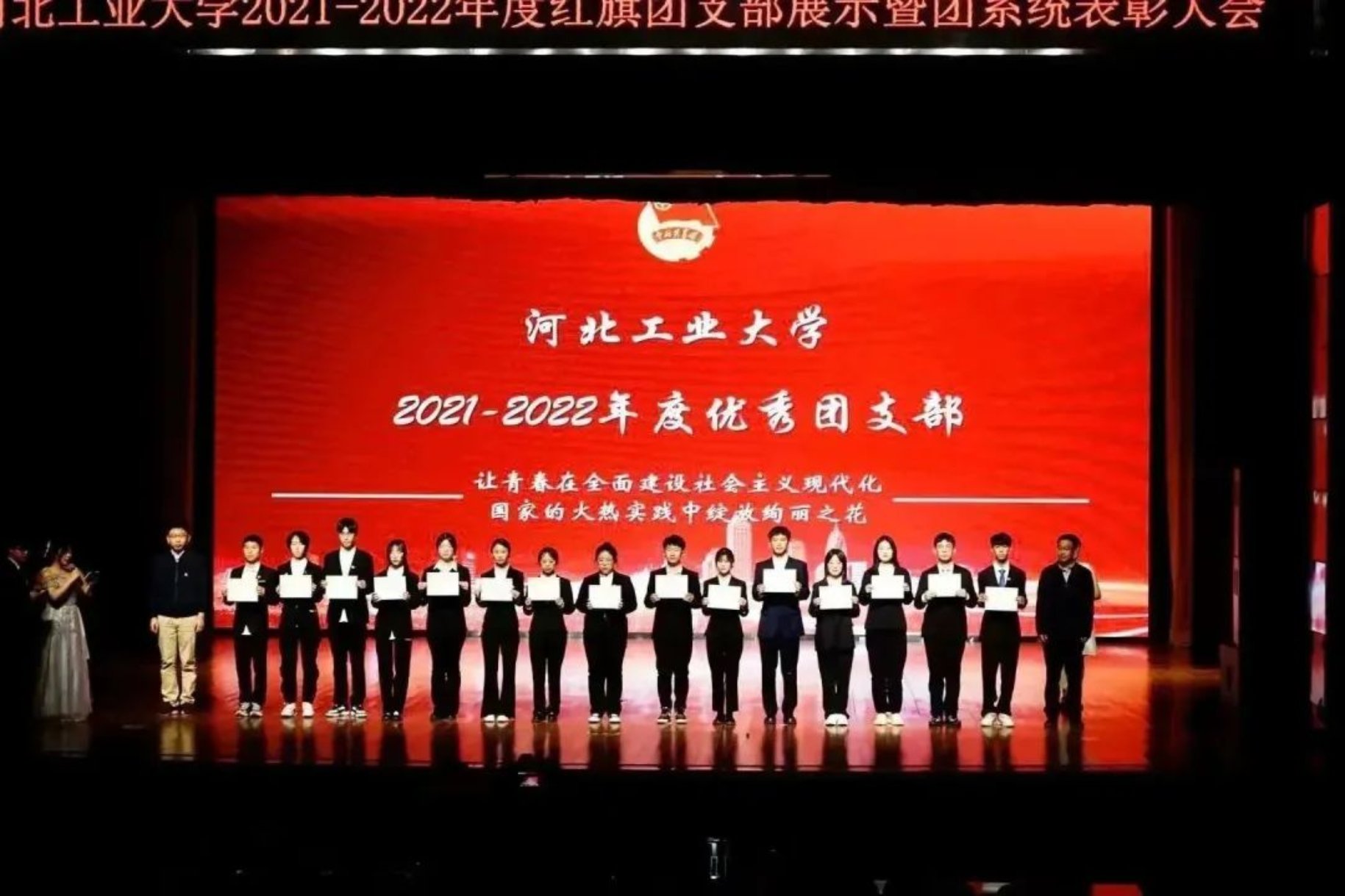 征程万里风劲,重任千钧奋蹄,承百廿薪火,立青春之志。青年以青春为底,用奋斗作笔,创激昂青春。麻豆影片-自拍偷拍-酒店偷拍 2021-2022年度红旗团支部展示暨团系统表彰大会于3月31日在麻豆影片-自拍偷拍-酒店偷拍 北辰校区大学生活动中心成功举行。麻豆影片 汉语201团支部参加2021-2022年度红旗团支部展示并荣获“2021-2022年度红旗团支部”荣誉称号。
