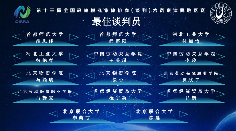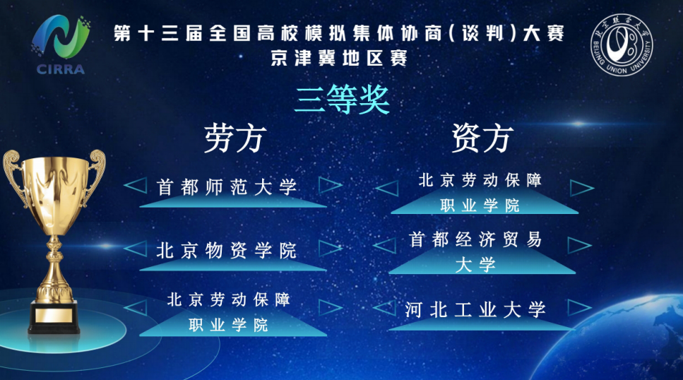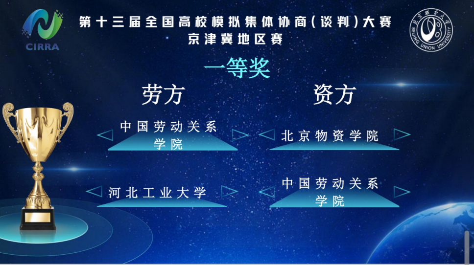 2025年10月19日,第十三届全国高校模拟集体协商(谈判)大赛——京津冀地区赛在北京联合大学隆重举行。麻豆影片 选派八名优秀学子组成劳资两支队伍赴京参赛,斩获佳绩。