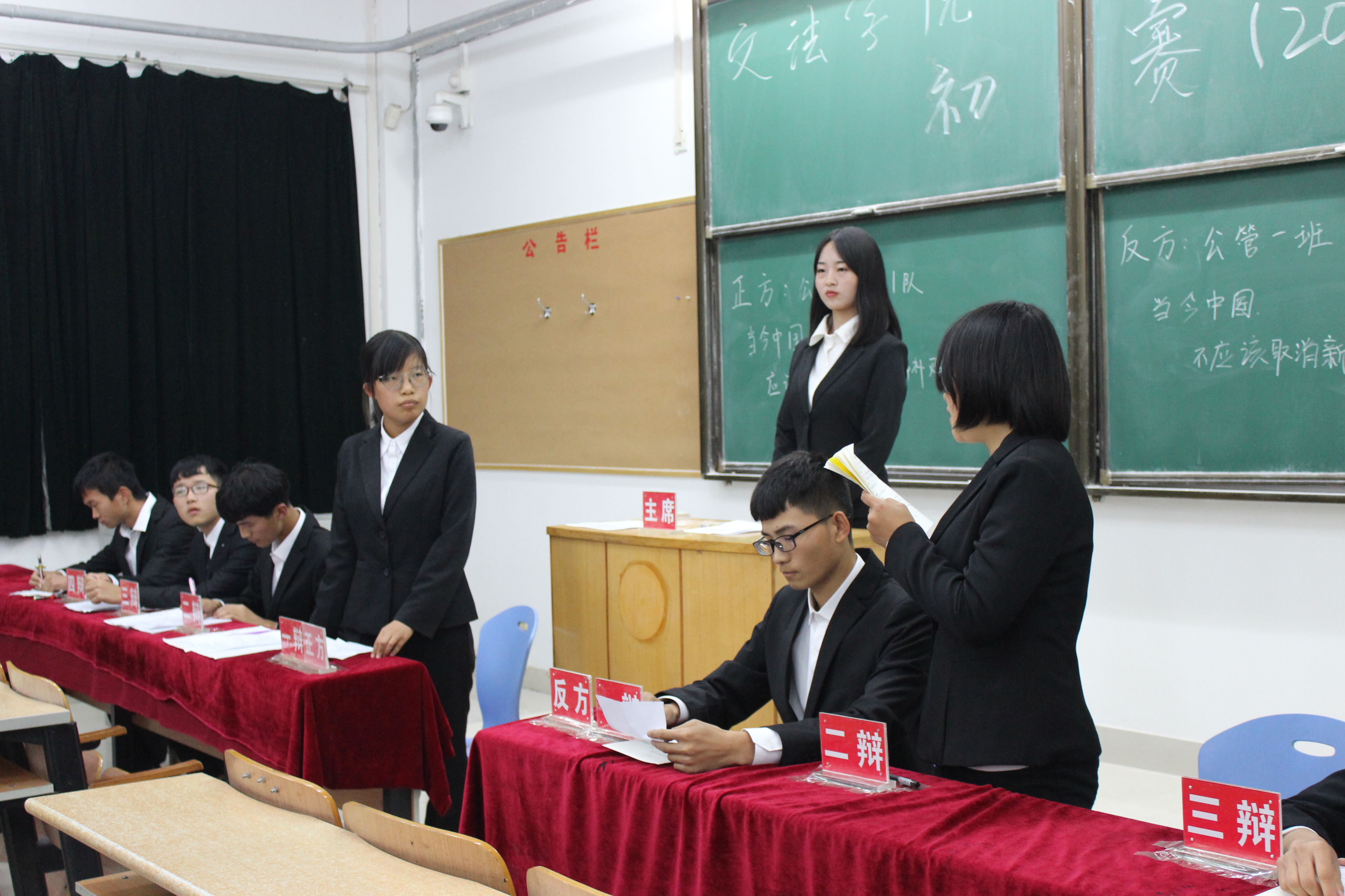 10月27日,四支队伍狭路相逢,赛场上迸发出的不仅仅是思维之火、语言之花,更多的是一种人性启蒙的光芒。在这场决赛前的殊死搏斗中,法学专业和公管专业两支队伍顺利杀出重围,获得了通往决赛之夜的入场券。