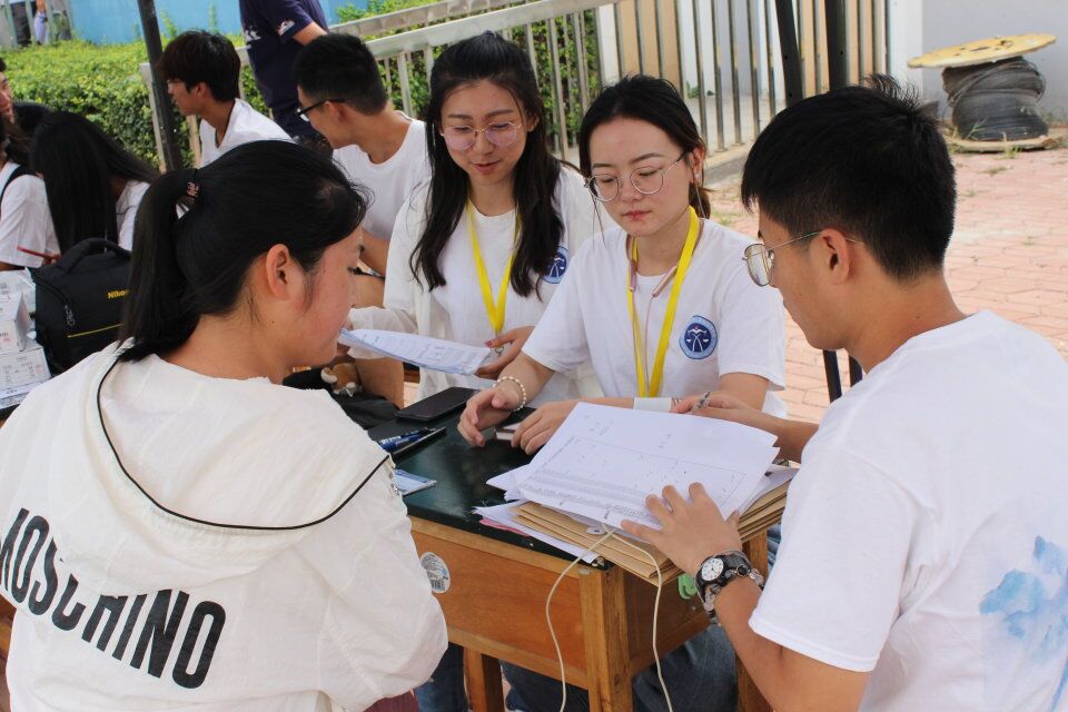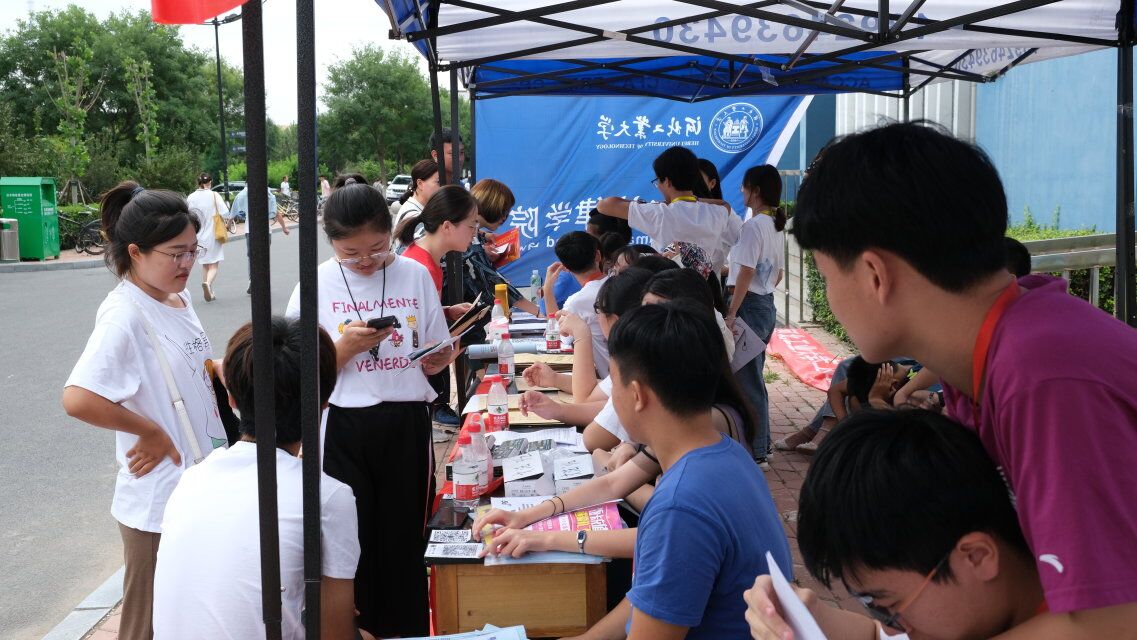 经过漫长的暑假,在余热犹存,秋意初现时,麻豆影片-91视频-黄色网站 2019级新生于8月22日、23日正式报道。22日-23日上午8点到下午6点,麻豆影片-91视频-黄色网站 在木华园七栋宿舍楼下搭起帐篷,组织纳新活动。迎新摊位前新生来来往往,络绎不绝,有时甚至排起了长龙。他们来自五湖四海,自天南地北赶赴津门,他们脸上洋溢着的兴奋与快乐,内心的无限憧憬和满心欢喜,却是相似的,也是最真实的。院学生会的学长学姐与新生负责人认真投入工作,为新生们收取材料、分发物品、指明道路,积极帮助新生们解决问题,迎新工作秩序井然。