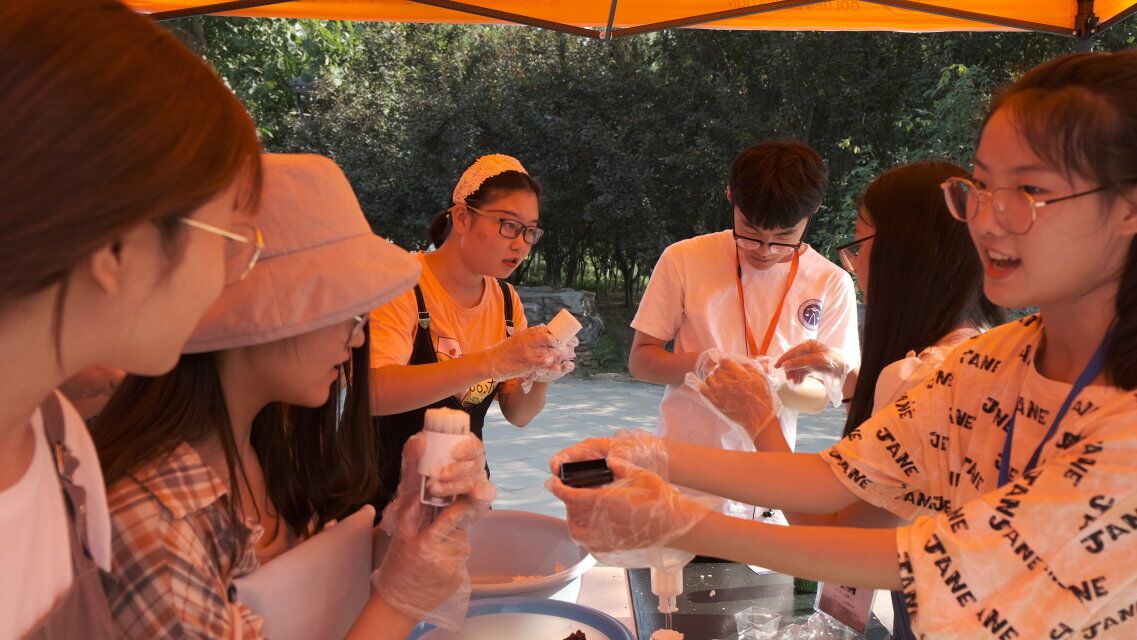 最受学生们欢迎的就是自己动手做月饼的环节。月饼象征团团圆圆,自己动手制作的月饼更是别具风味。在各个摊点,同学们围坐在桌旁,选择自己喜欢的馅料放入冰皮中,再用模具进行制作。现场很快排起了长龙。自己做月饼的活动激发了同学们动手的兴趣,也让中秋的节日气氛变得更浓。