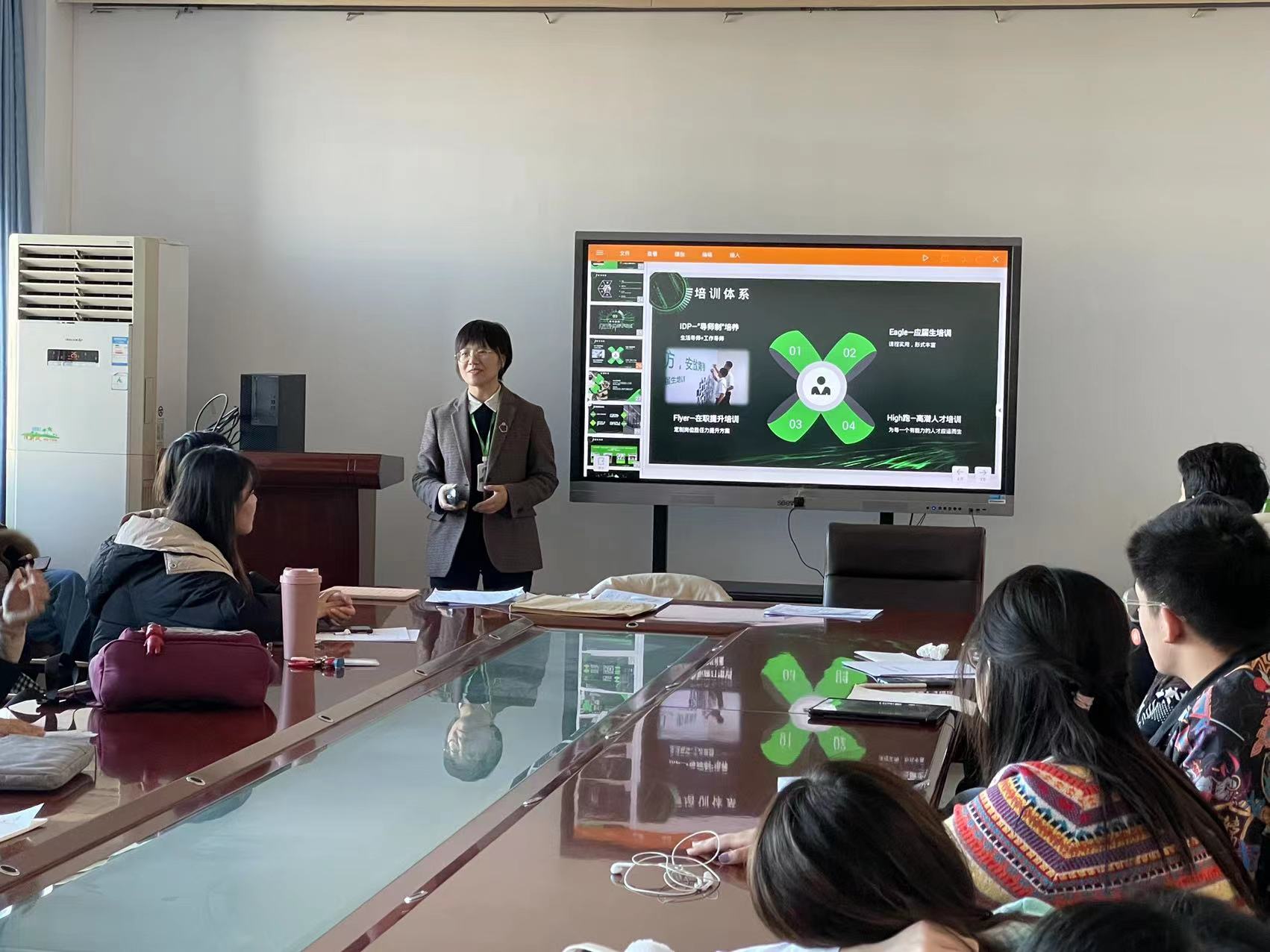 支部委员会结束后,基于即将毕业的同学们的求职意愿党支部书记王鑫同志邀请到了天地伟业的招聘经理进行企业宣讲会,并现场为同学们进行了面试培训和面试经验分享。