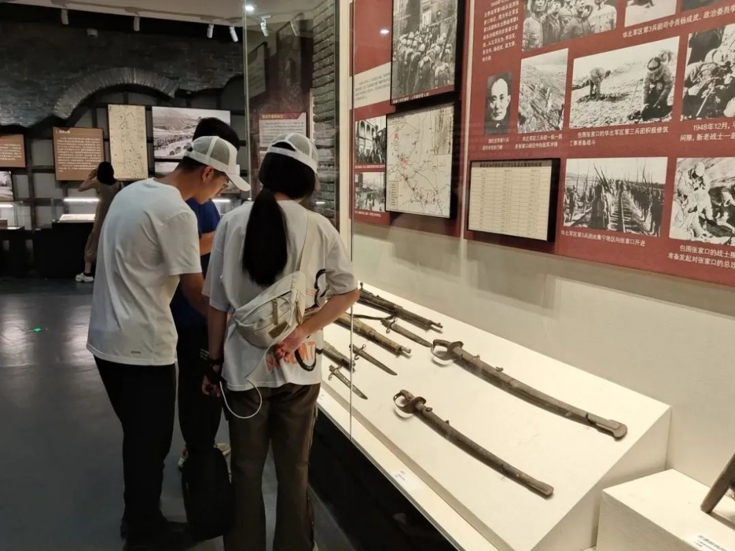 随后,一片真心在赤城实践队队员们来到了张家口近代历史革命专题陈列展厅。进入展厅,“红色张垣”四个大字映入眼帘。实践队员们学习了詹天佑如何打破西方垄断,建造京张铁路的伟大事迹,了解了1940年平北抗日根据地创建,中国共产党团结带领张家口的人民群众在战斗形势最为严峻的平北区域开展反侵略活动的艰辛,以及八路军在1940年收复张家口失地、解放军在平津战役中取得新保安战役、张家口围歼战胜利的红色革命历程。