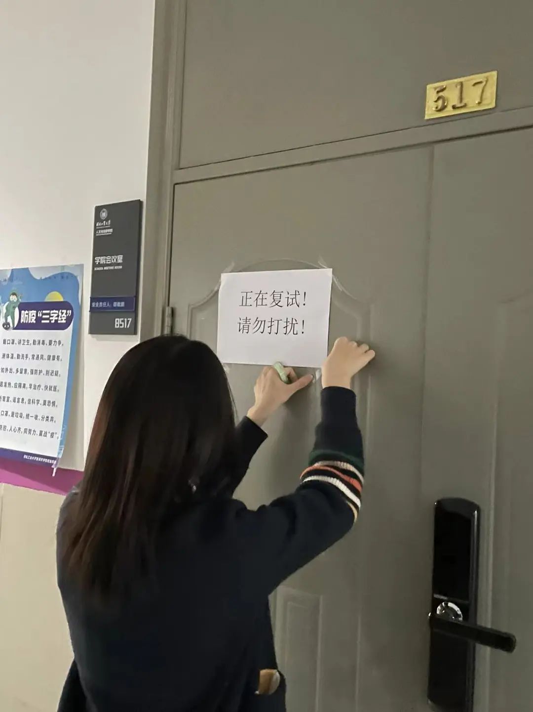 此外,在做好疫情防控常态化管理工作的同时,麻豆影片 还积极在线上线下与同学们沟通交流,引导大家做好压力调试。这有效缓解了同学们在复试前的紧张焦虑情绪,确保学生能以良好的心态顺利完成复试。
