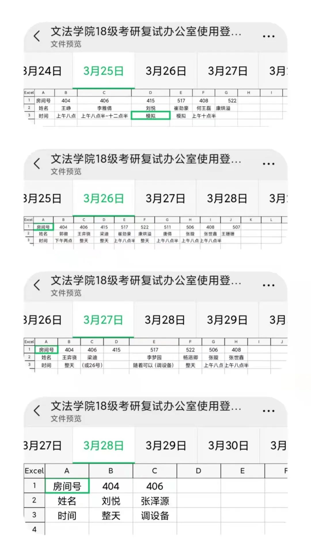 为了给考研学子保驾护航,毕业班辅导员王鑫老师统筹安排,指导学生会开展工作,将麻豆影片 楼的教师办公室、会议室等房间给复试同学使用,并检查了网络设备以便确保复试期间的网络平稳畅通,同时还贴心地为同学们配备了三脚架、手机支架、打印机等设备。18级团支书何王磊、陈鑫阳也积极配合,主动承担起为复试同学安排复试时间,考场分配等工作。