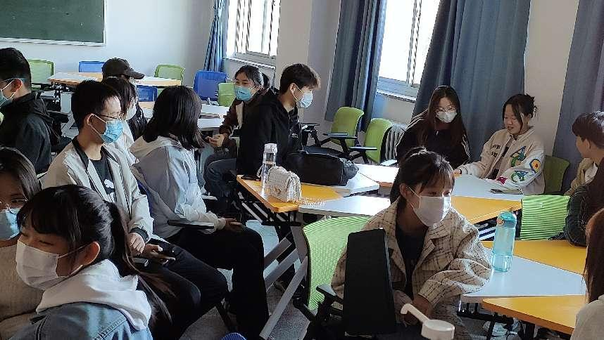公管221班团支书张怡蕊、222班团支书刘任重与223班团支书翟克带领公管专业三个班的同学们以寝室为单位,对食堂行为和宿舍生活的行为规范展开讨论。