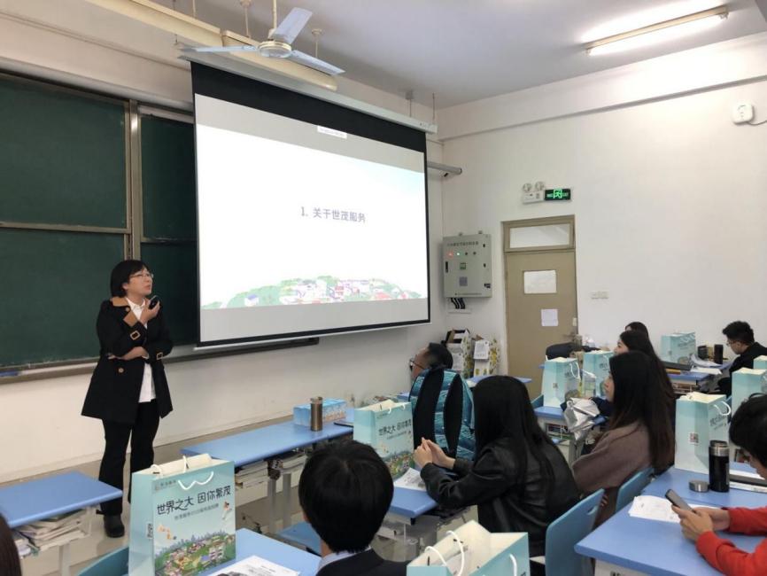 麻豆影片 公共管理专业系主任王颖老师邀请到世茂天成物业服务集团有限公司天津分公司副总孙岩女士、杜毅彬经理、郭子武经理和高翔经理为同学们进行宣讲。他们重点给大家介绍了世茂天成物业服务集团有限公司天津分公司的基本架构和发展战略以及世茂服务校园招聘品牌的培养规划,同时也为同学们拓展了关于职业选择和职业生涯规划的经验知识。