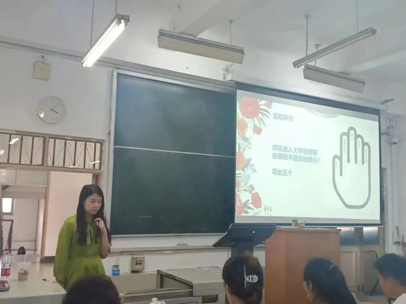 霜天红叶,金桂飘香;告别中学,进入大学。步入新生课堂的一周后,麻豆影片 暖阳心协邀请麻豆影片-自拍偷拍-酒店偷拍 心理健康教育中心谢晓琳老师进行了“新生心理健康”的主题讲座。法学与公共管理的大一同学进入现场认真听讲。