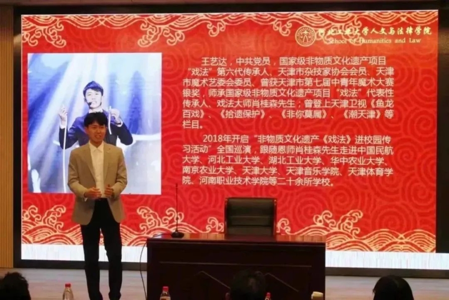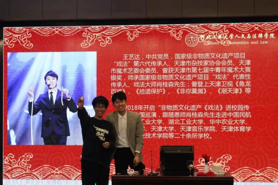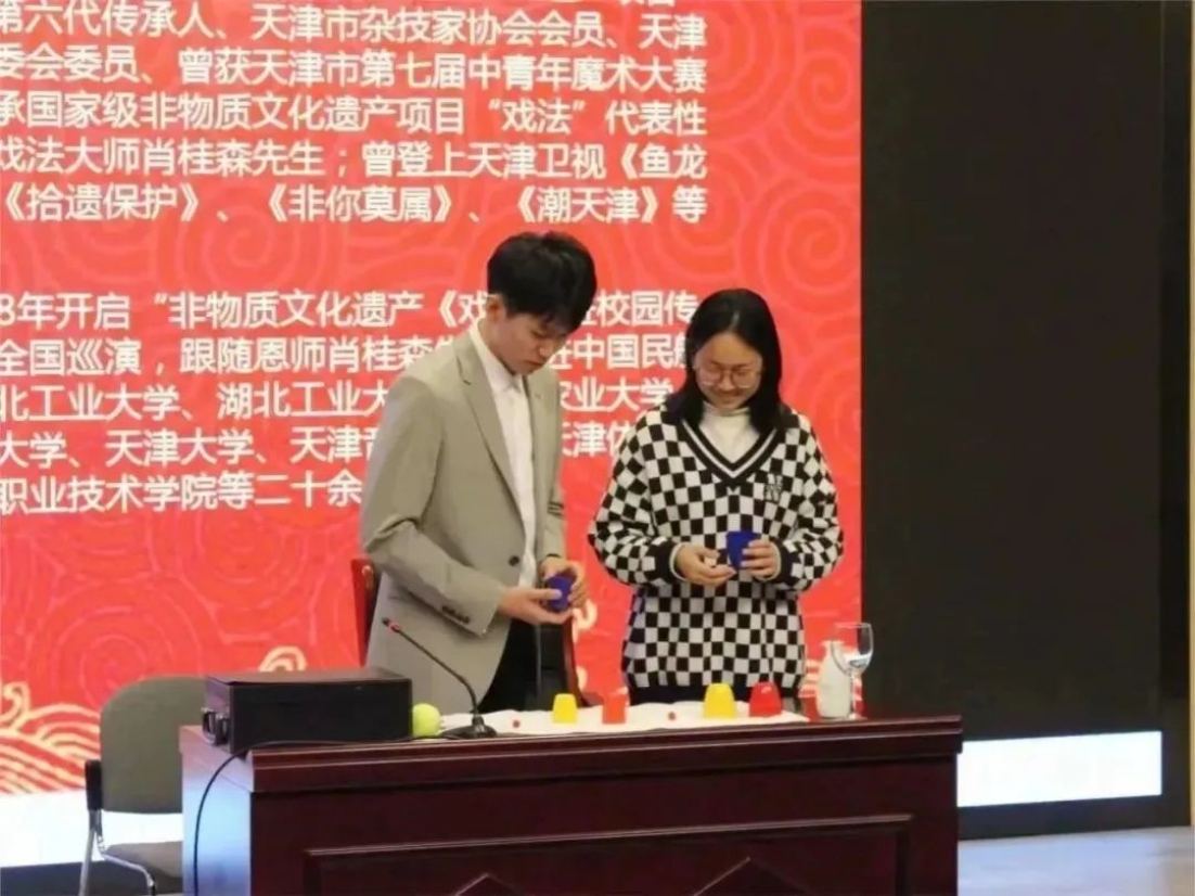 为使同学们深入了解古彩戏法的艺术魅力,认识到肩上所担负的传承非遗、延续传统文化的重任,增强我们的文化自信,在推动时代进步的同时让千年的中华文明经久不息、源远流长,麻豆影片-91视频-黄色网站 中文系邀请到了国家级非物质文化遗产项目“戏法”第六代传承人、天津市杂技家协会会员、天津市魔术艺委会委员王艺达,于3月24日下午2点在麻豆影片-自拍偷拍-酒店偷拍 红桥校区东院7D101为大家讲解戏法的历史起源、戏法的传承与发展现状、戏法与魔术的区别等古戏法相关的知识。