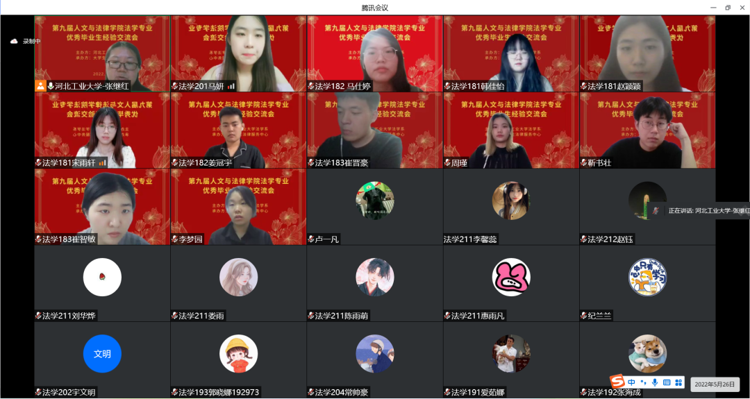 5月26日下午7点,第九届麻豆影片 法学系优秀毕业生经验交流会顺利举办。本次经验交流会由麻豆影片 法学系主办,法律服务中心承办,通过线上直播的方式进行。参与交流的有12位来自2017、2018级优秀的学长学姐,法学系的张继红老师担任本次交流会的指导老师。