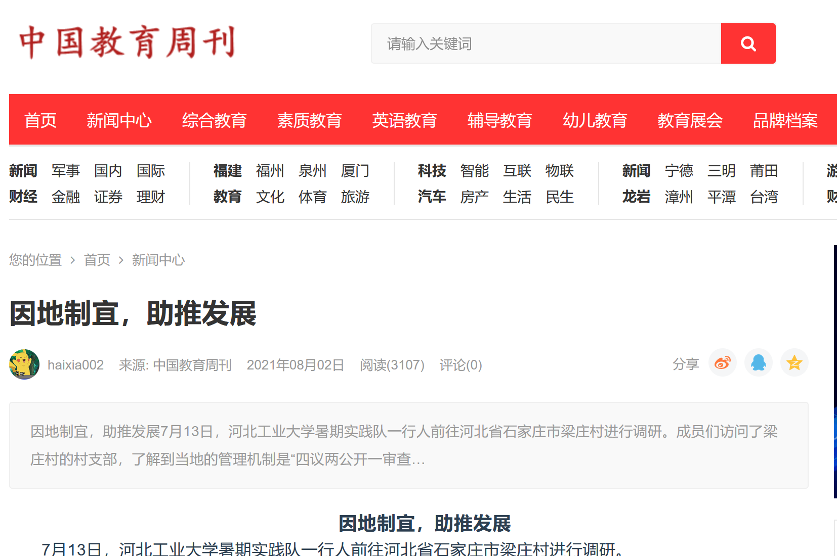 中国教育周刊发表《因地制宜,助推发展》