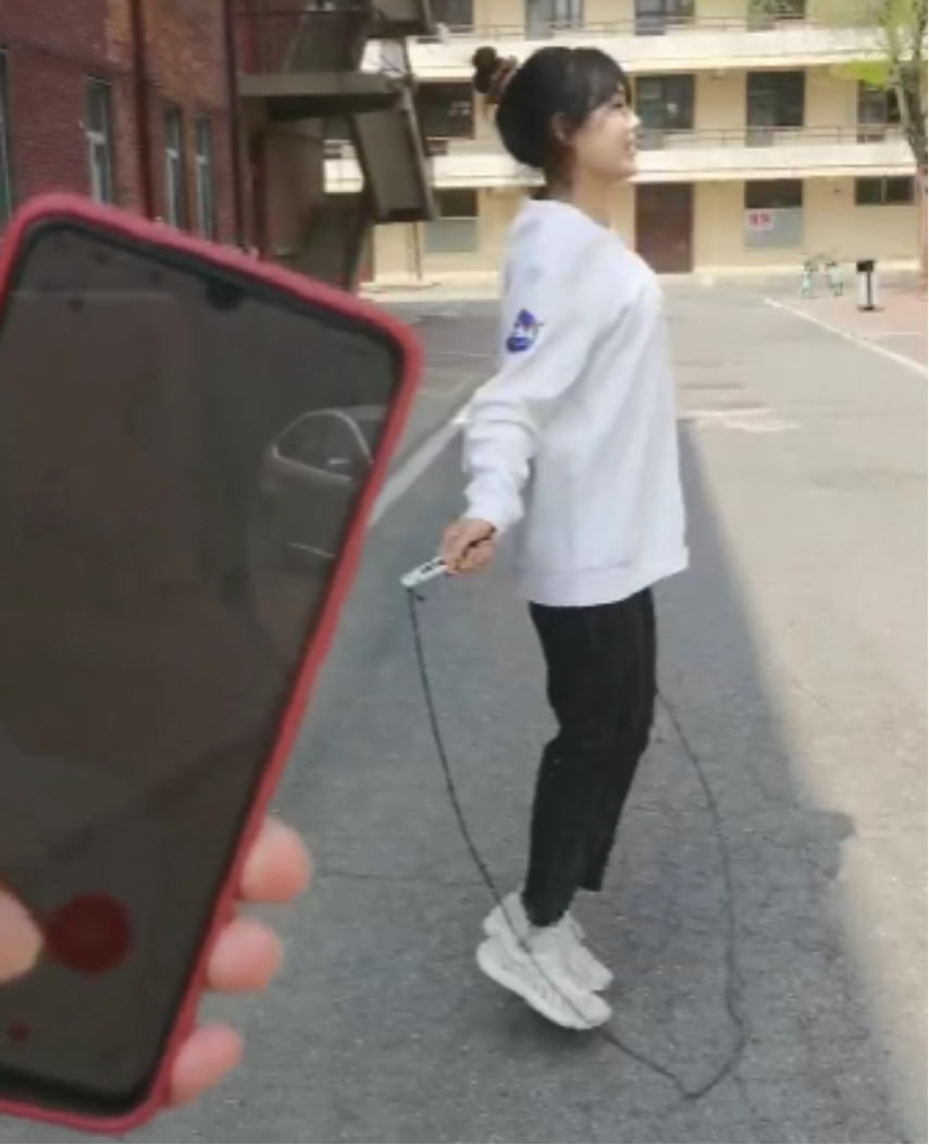 跳绳:双脚起跳,跳绳自双脚下沿身体额状轴旋转360度为一周算一个,计一分钟内完成次数。视频中一个个跳跃的身影,跳跃出青春的活力,展现出文法学子的魅力与昂扬向上的精神。