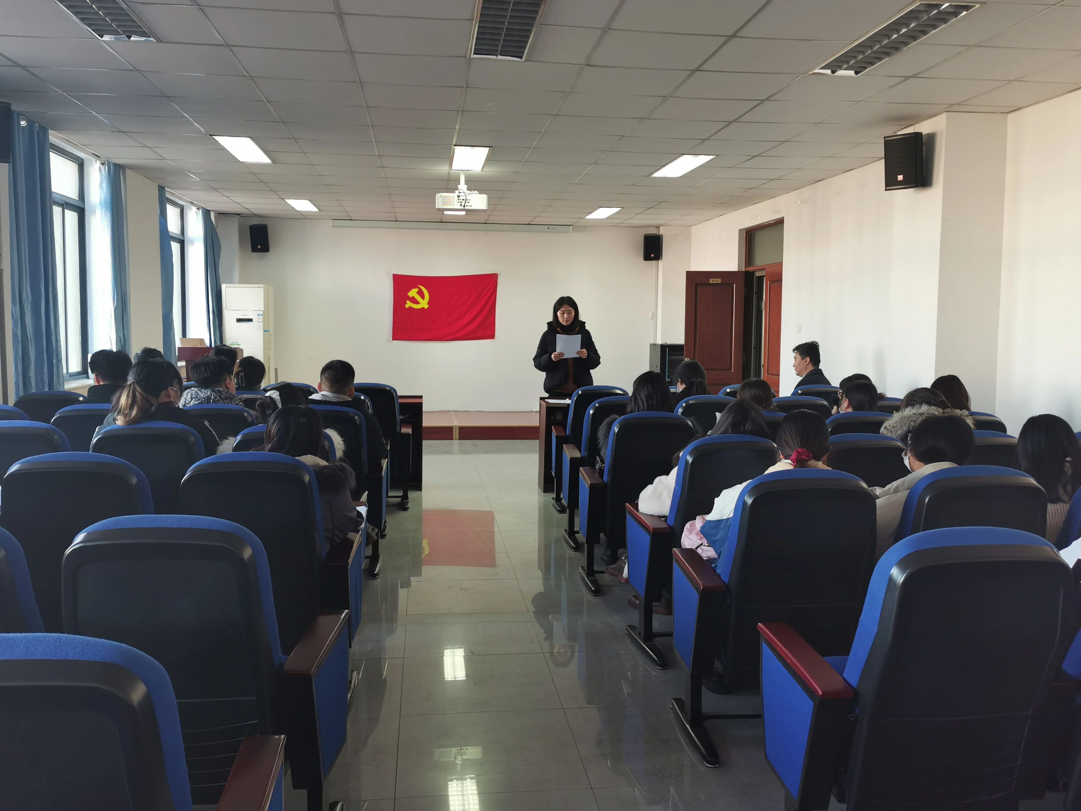 2021年12月6日上午,麻豆影片 党委副书记兼副院长李彦磊带领支部全体成员学习十九届六中全会精神。会议由党支部书记许彦主持。